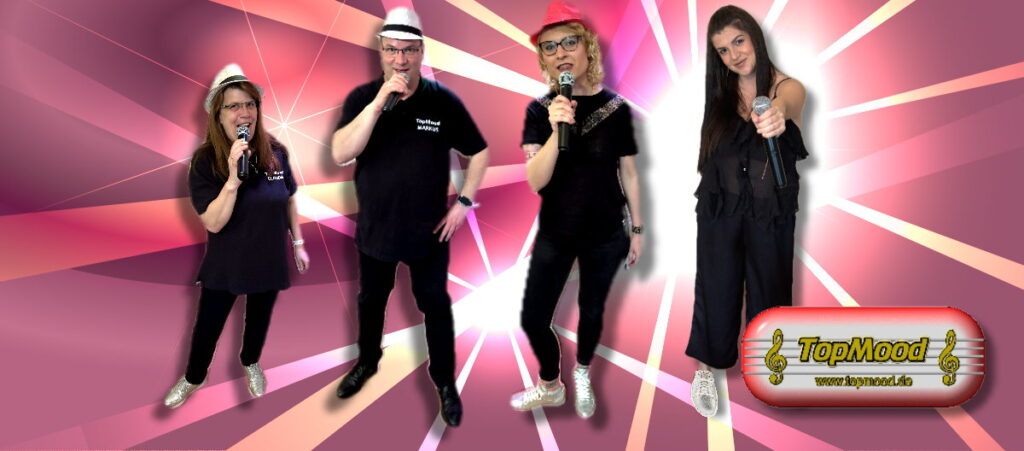 Die Stimmungstruppe „TopMood“, bereichert auch Ihre Veranstaltung. Wir lassen Ihr Event zu einem unvergesslichen Erlebnis werden. Wir präsentieren ein Repertoire von Schlager bis Karneval und PartyHits sowie Rockmusik, Pop, Oldies und Neue Deutsche Welle. TopMood ist besonders bekannt für ihr mitreißendes Stimmungsprogramm. TopMood bietet ein breites Repertoire für Jung und Alt mit ca. 250 bekannten Titeln zum Mitsingen. Ob Weinfest, Kirmes, Oktoberfest, Faschingsveranstaltung, Ihre Weihnachtsfeier, Ihre Hochzeit, Ihr Geburtstag oder sonstige