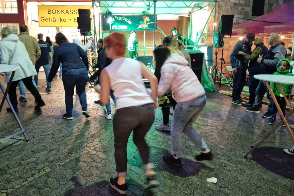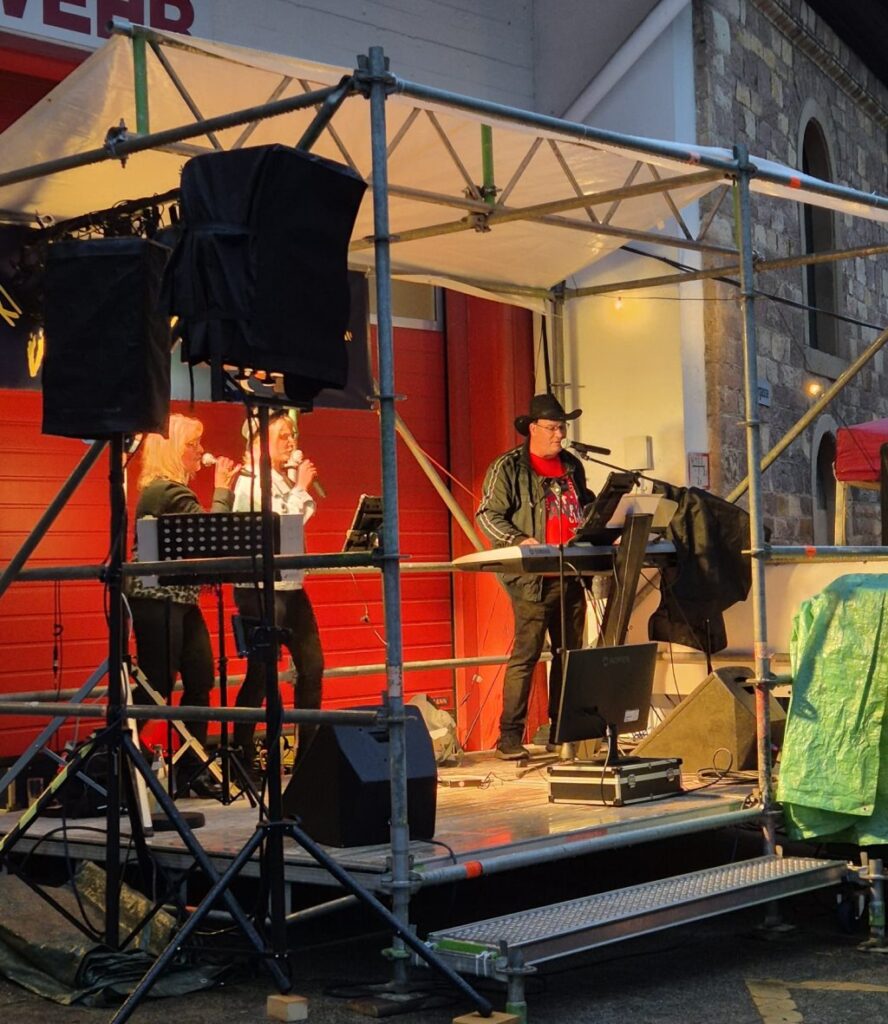 Um 20:00 Uhr war es dann soweit. TopMood übernimm die Bühne mit Livemusik. Trotz des leider nassen Wetters aber vollen Zelten wurde ordentlich gefeiert und getanzt. Wir freuen uns über so viel positives Feedback aus dem Publikum und von Veranstalter Seite. Nachwuchssängerin Caro, die hier ihren ersten Auftritt mit TopMood absolvierte, hatte zur Unterstützung Ihren Fan- Club mitgebracht. Caro hat ihren Auftritt mit sehr viel Spaß und Freude am Singen vorbildlich gemacht. Nach dem Auftritt kochten die Emotionen hoch über die Freude und diesen wunderschönen und unvergesslichen Auftritt. Auch Ute und Markus sorgten für volle Tanzfläche. Claudia sorgte mit den passenden Accessoires zu einigen Liedern auf der Bühne für beste Stimmung. Steffen sorgte wie immer für den hervorragenden Klang und mischte die Gruppe souverän ab. TopMood glänzte mit einigen neuen Liedern im Repertoire. Neu dabei waren Titel wie „Wackelkontakt“, „All In (Lieblingslieder)“, „Westerland“, „We Will Rock You“, „I Want To Break Free“, „Schau mal herein“ und so weiter.
